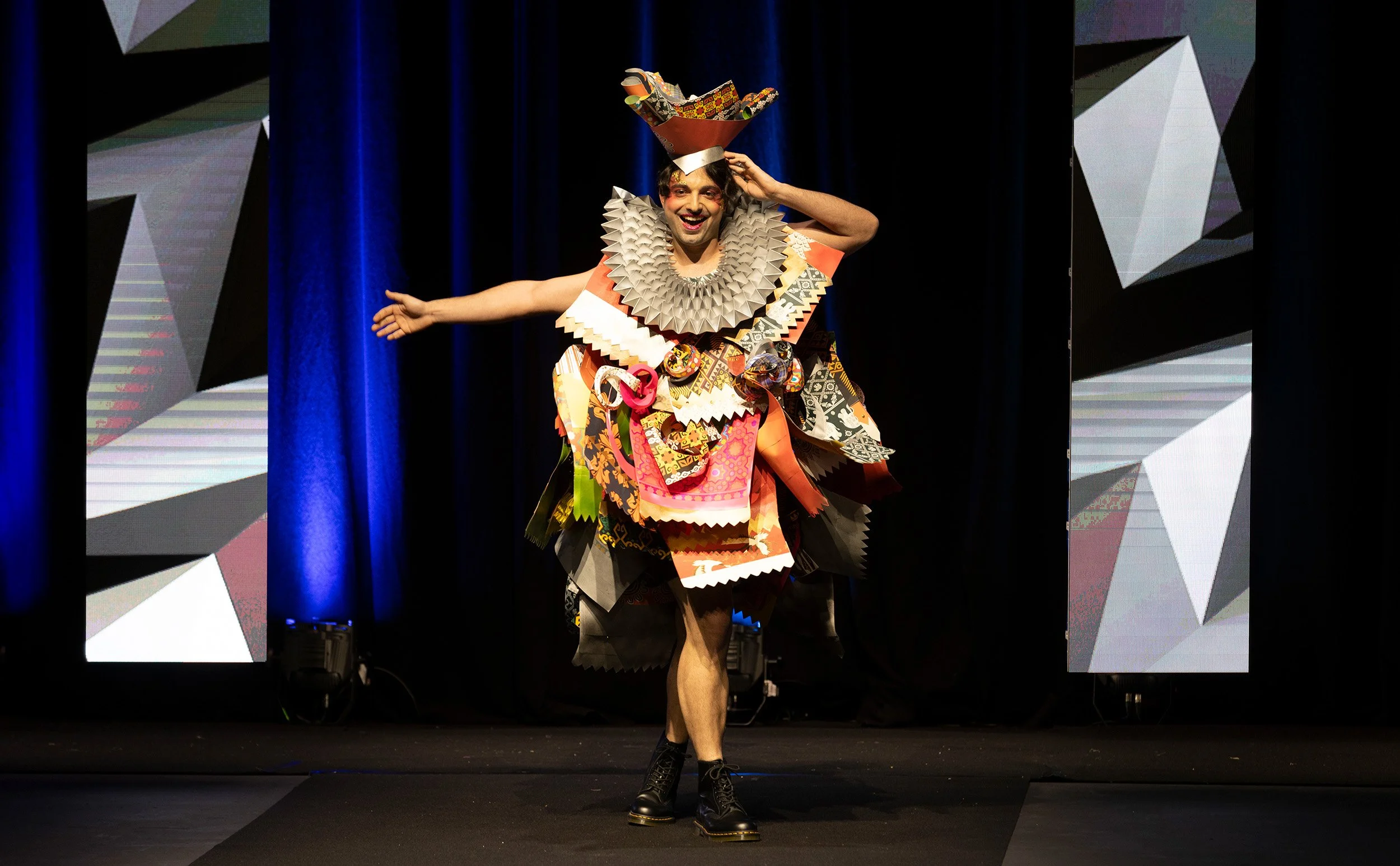 This garment is made entirely from recycled items designed for the University of Western Sydney’s Equity and Diversity unit entry into the Sydney Gay and Lesbian Mardi Gras 2024.